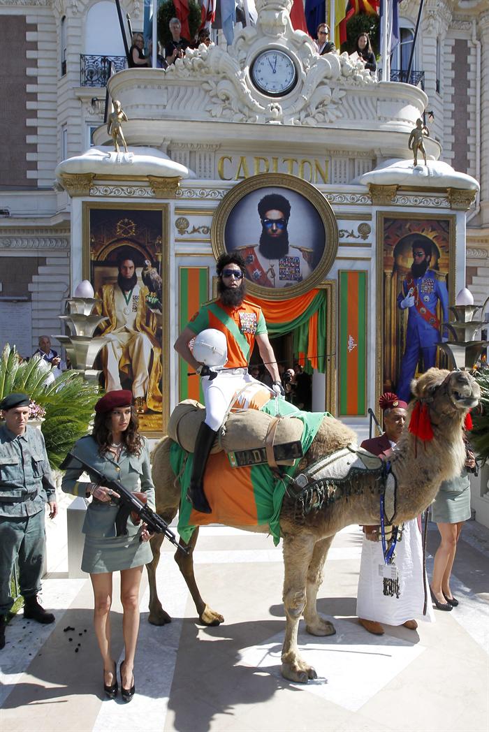 El actor británico Sacha Baron Cohen posa frente al hotel Carlton durante la presentación de su película The Dictator (El dictador)