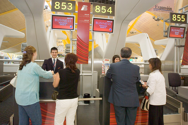 Cuando un eurodiputado viaja en business tiene varios mostradores exclusivos para facturar y evitar así las colas.