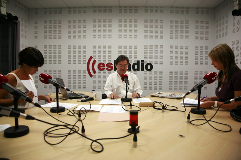 6:59 de la mañana del 7 de septiembre. Rosana Laviada y Maite Loureiro flanquean a Federico Jiménez Losantos un minuto antes de entrar en el aire. Suena "Suspiros de España".