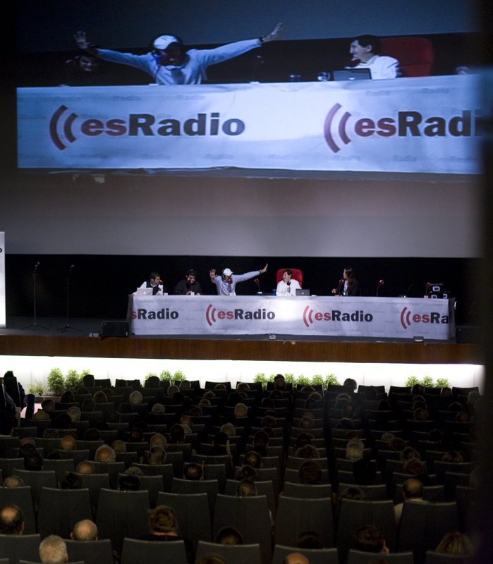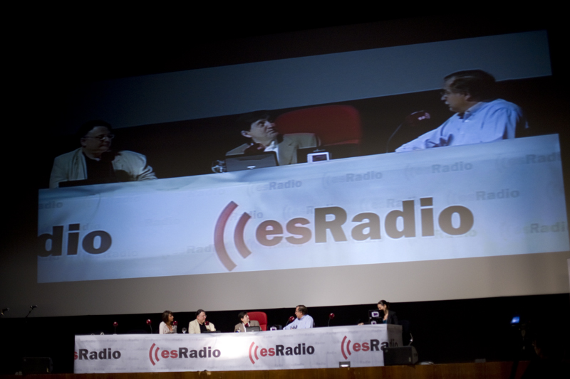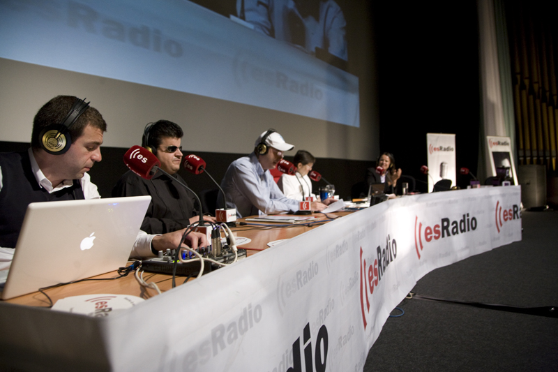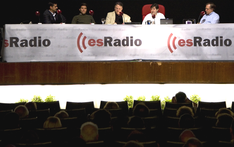 La plana mayor de esRadio. Javier Somalo, Dieter Brandau, César Vidal, Federico Jiménez Losantos y Luis Herrero juntos en el Palafox anunciando la temporada 2010-2011.