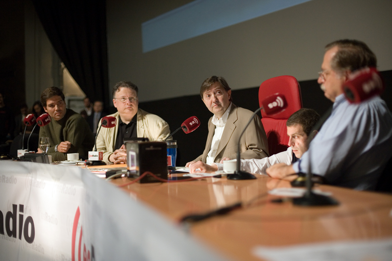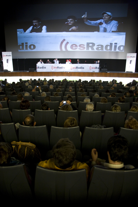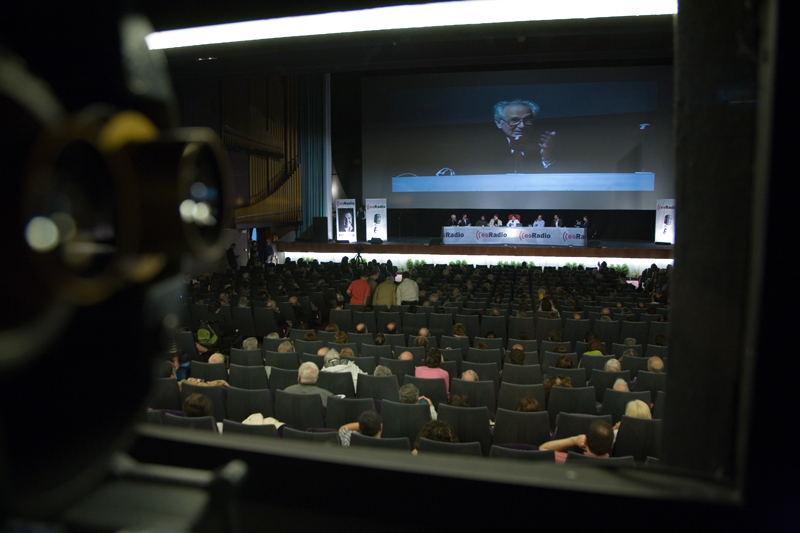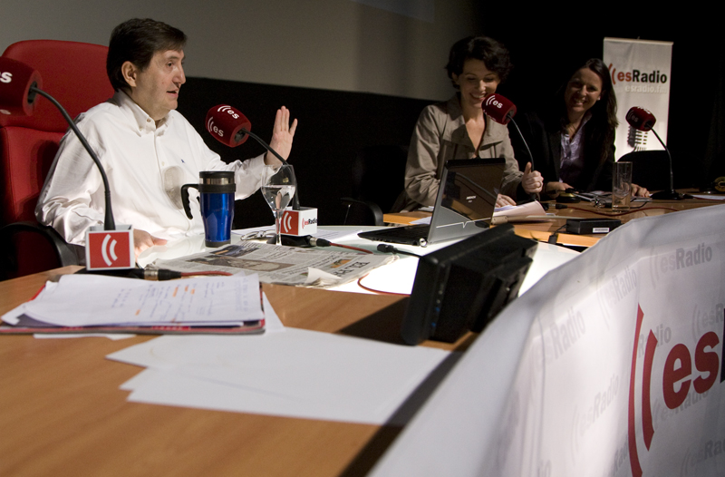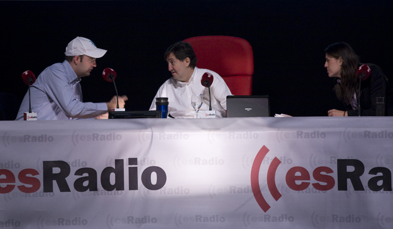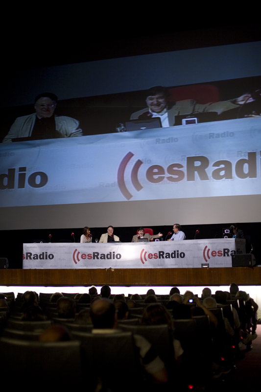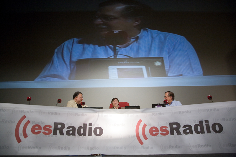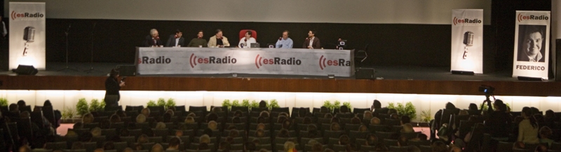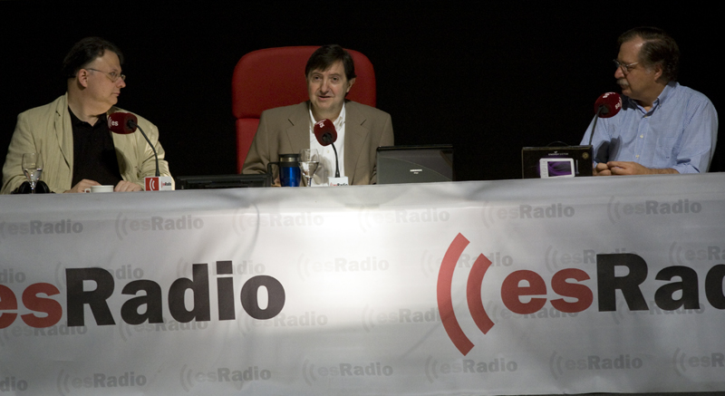 Federico se dirige a la audiencia, a la del cine y a la que está al otro lado del receptor, flanqueado por César Vidal y Luis Herrero.