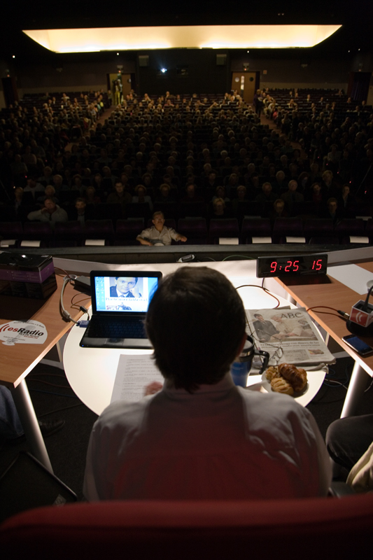David Miner en plena interpretación. La pantalla del cine acercaba a todos los asistentes lo que estaba pasando en la mesa.