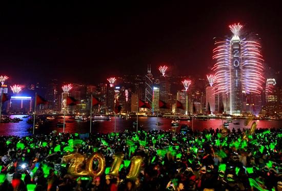 Chinos celebran la llegada del 2011 en la antigua colonia británica de Hong Kong.