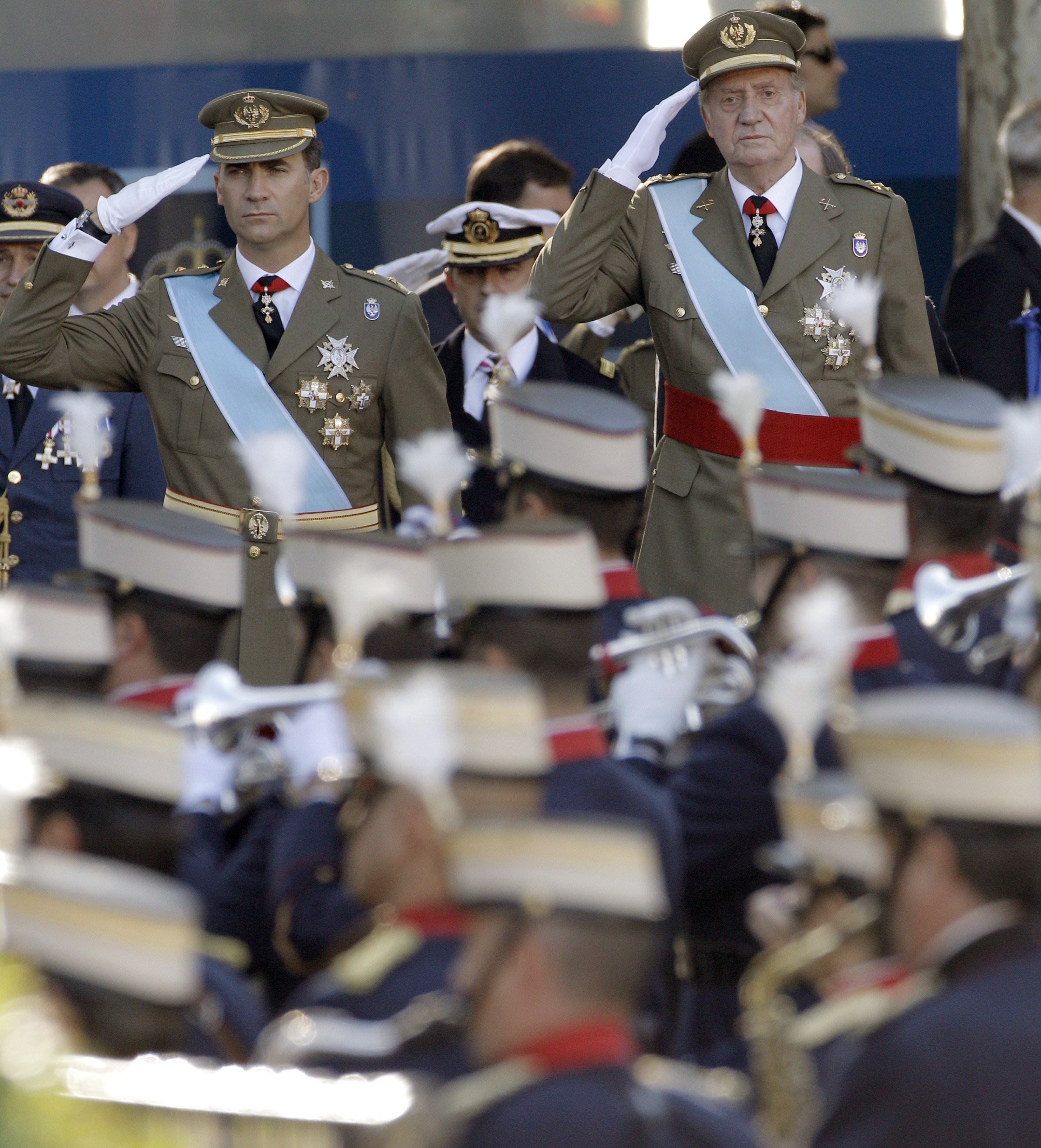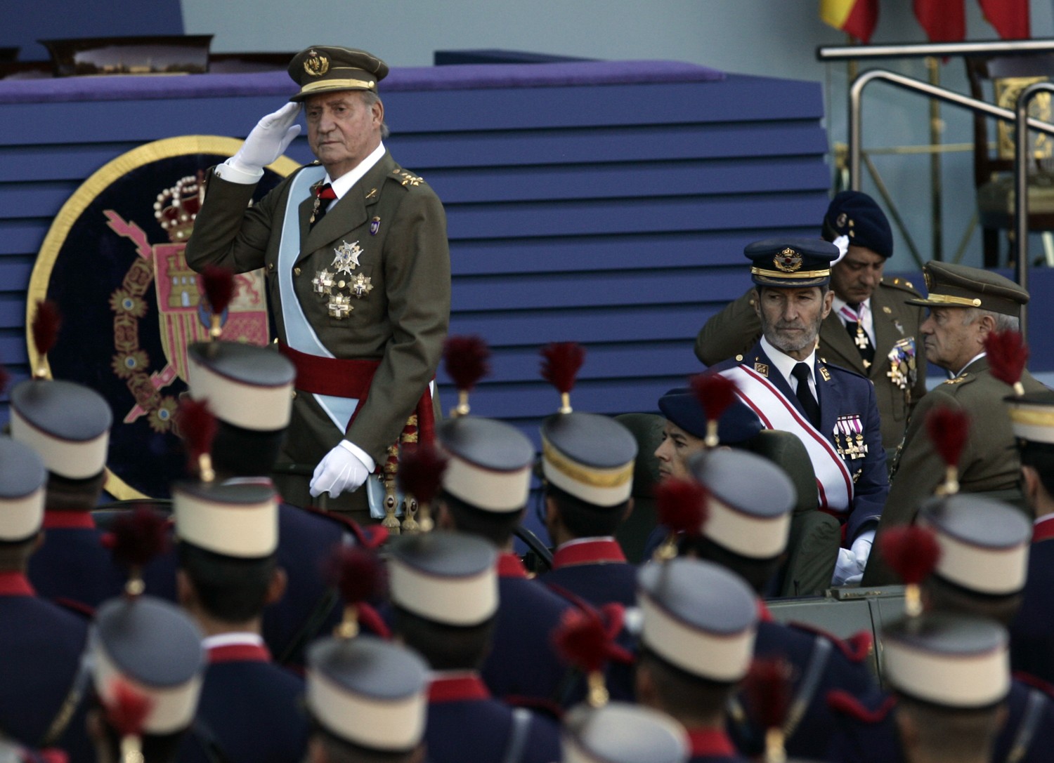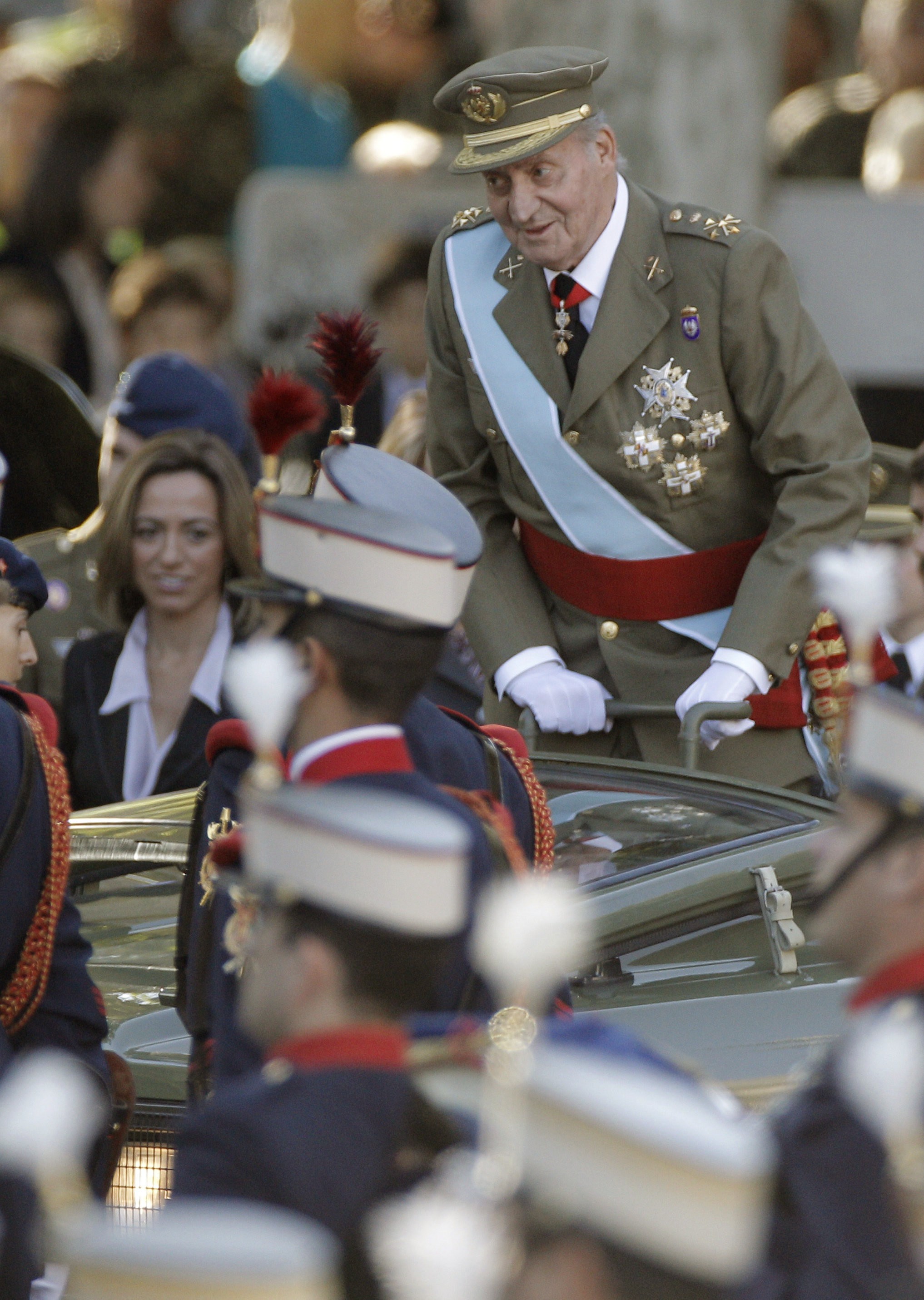 El Rey ha pasado revista en un vehículo debido a su reciente operación.