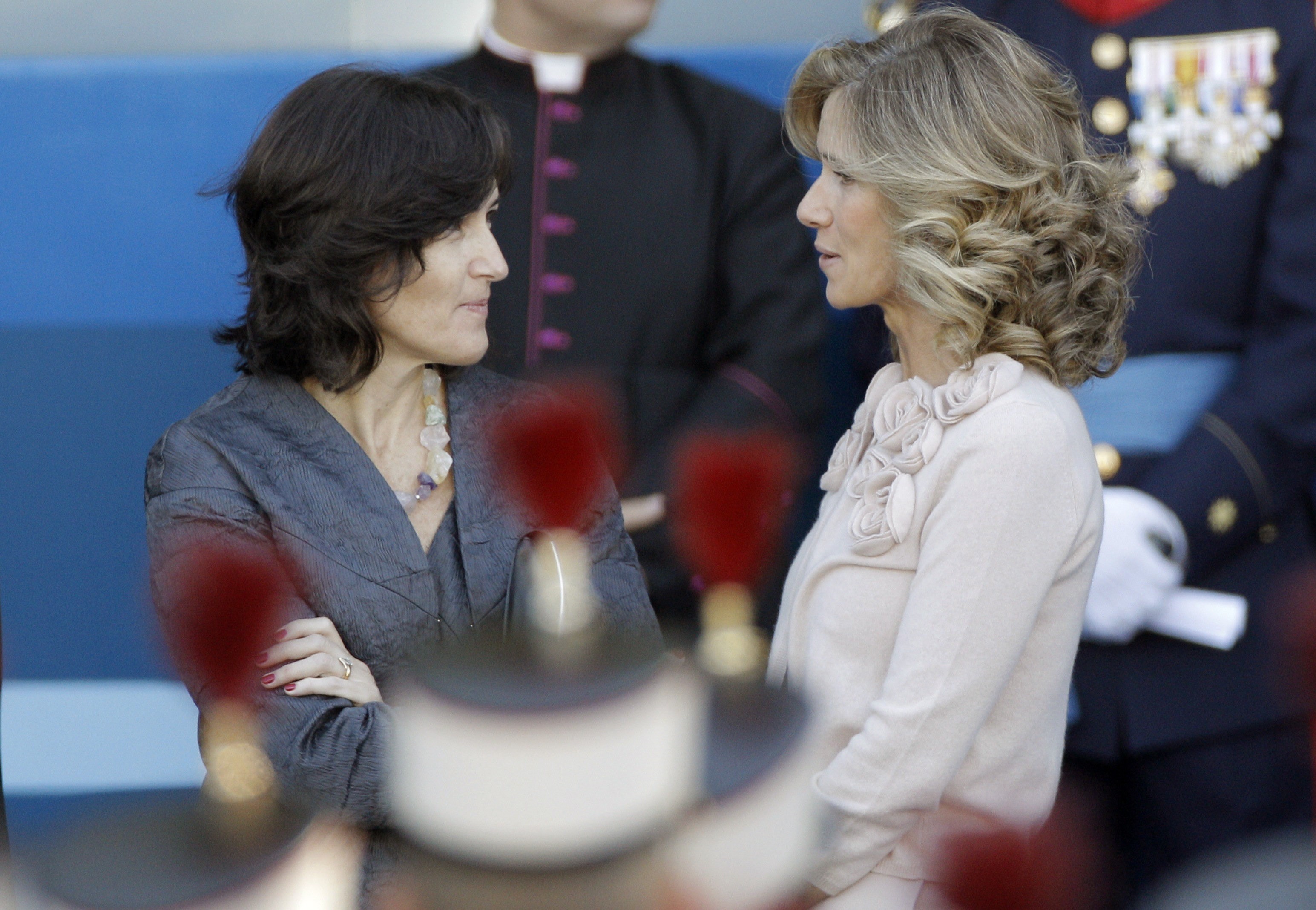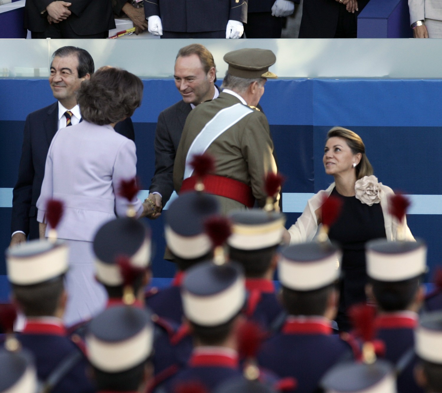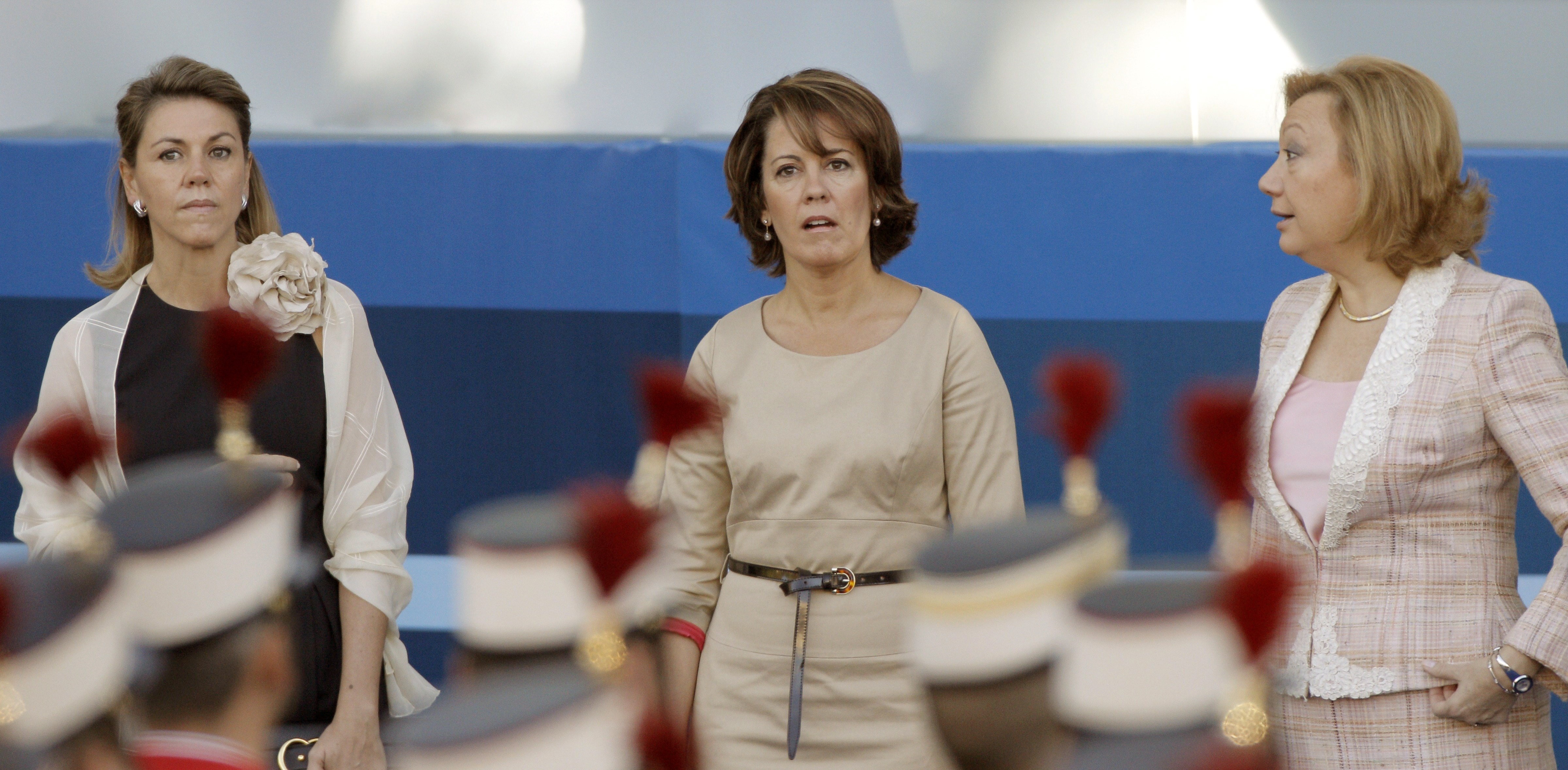 Las presidentas de Castilla-La Mancha, María Dolores de Cospedal; Navarra, Yolanda Barcina, y Aragón, Luisa Fernanda Rudí, antes del desfile. EFE/JuanJo Martín