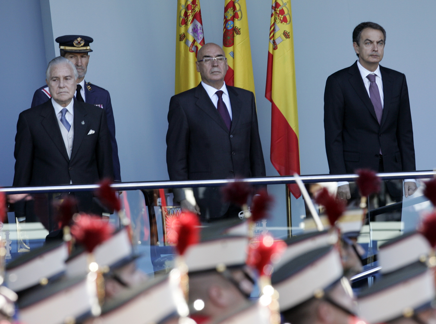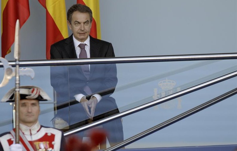 El presidente del Gobierno, José Luis Rodríguez Zapatero, durante el desfile militar de la Fiesta Nacional, hoy en Madrid. EFE/JuanJo Martín