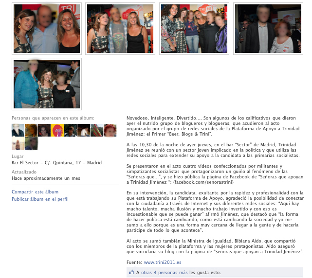 Galería de fotos publicada en Facebook del 1er encuentro de blogueros/as con Trinidad Jiménez.