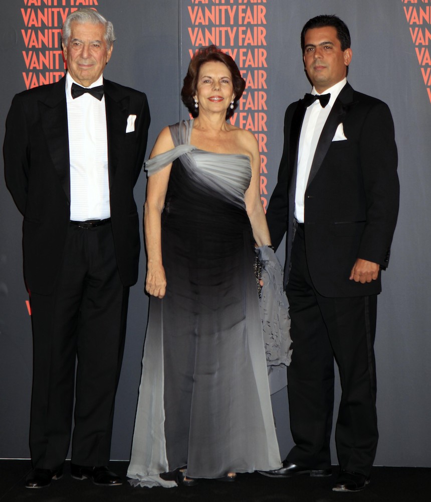 Vargas Llosa junto a su esposa y su hijo.