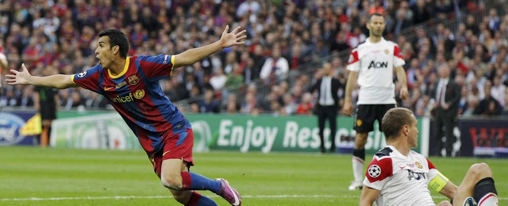 El canario Pedro Rodríguez celebra el tanto que adelantó al Barcelona en la final.
