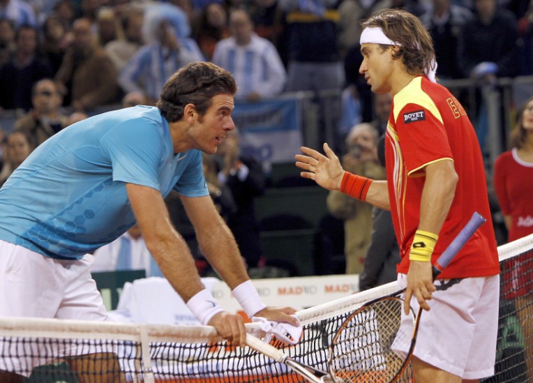 Ferrer saluda a Del Potro tras el partido