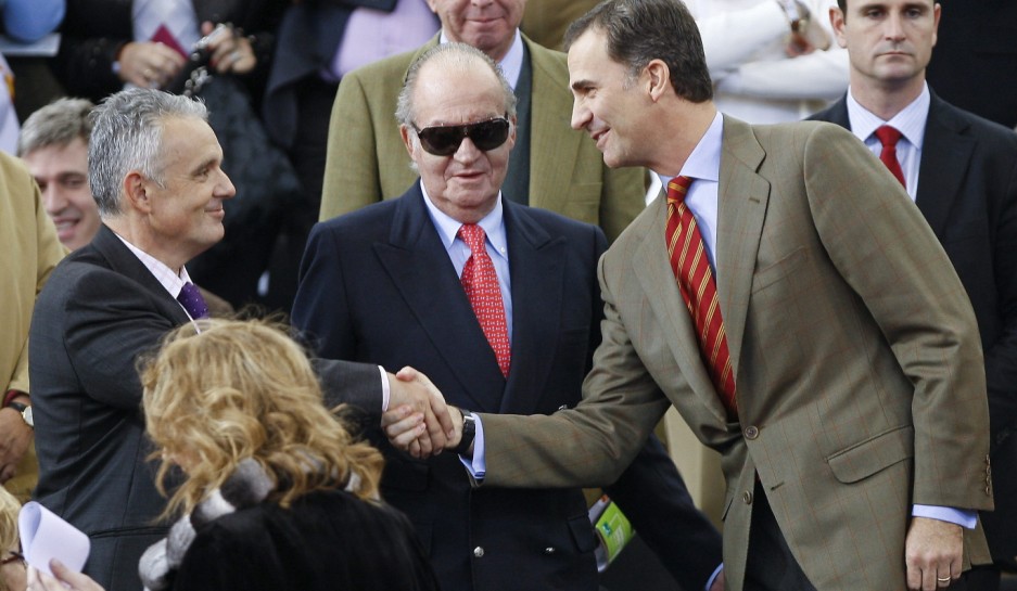 El Príncipe Felipe saluda al presidente de la RFET, José Luis Escañuela