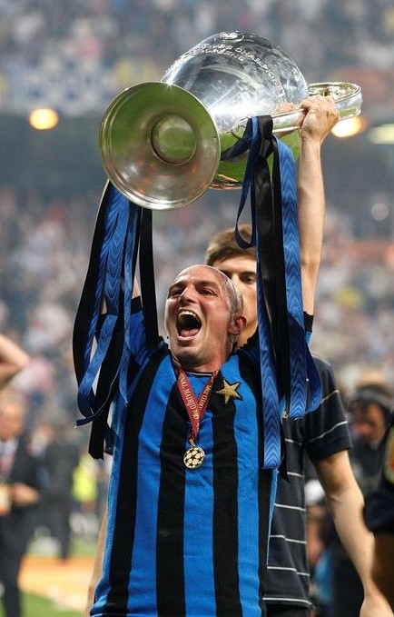 El argentino, que no estará en el Mundial porque Maradona no le ha seleccionado, celebra el título conseguido en el Santiago Bernabéu. El cenrocampista ha sido pieza clave en el Inter de Mourinho campeón del Scudetto, la Copa y la Champions.