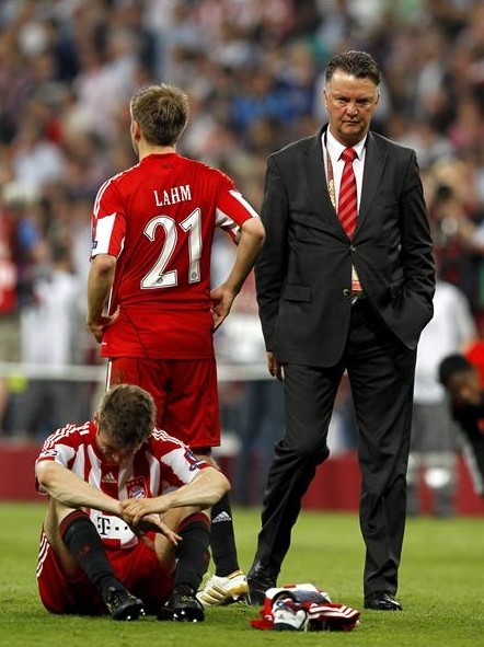 Müller, sobre el césped, Lahm, de espaldas, y el entrenador holandés Louis Van Gaal minutos después del pitido final.