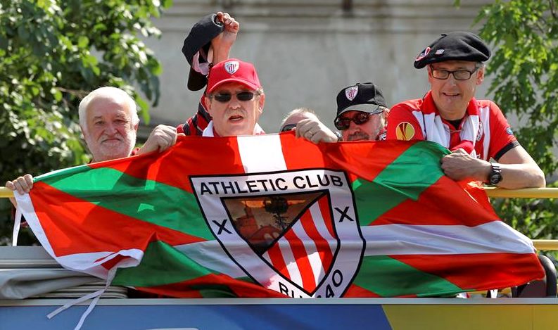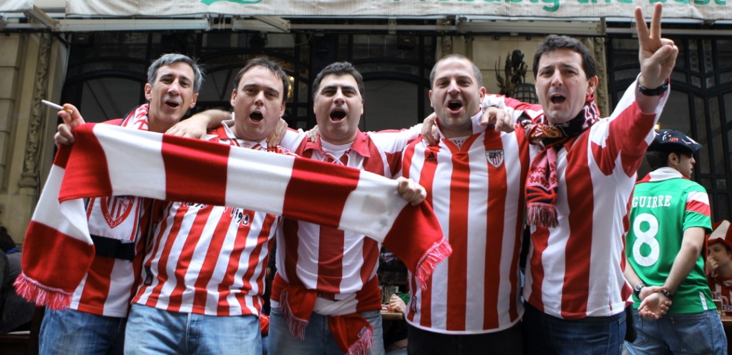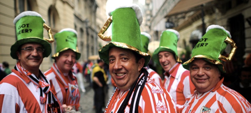 Hinchas del Athletic se reúnen en una calle de Bucarest, unas horas antes de la final de la Liga Europa.