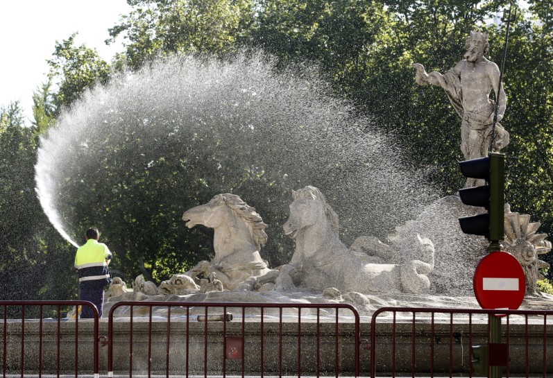 El Ayuntamiento de Madrid ha vallado la fuente de Neptuno para proteger el monumento, en previsión de que los aficionados del Atlético de Madrid se concentren en la plaza tras la final de la Liga Europa.