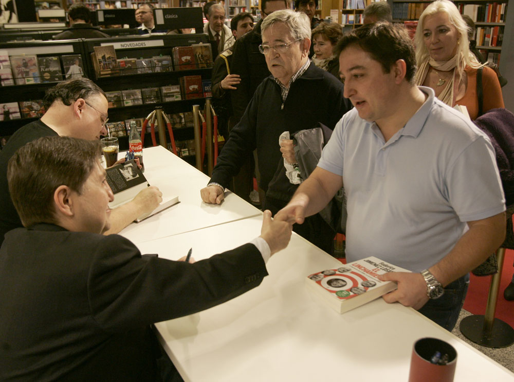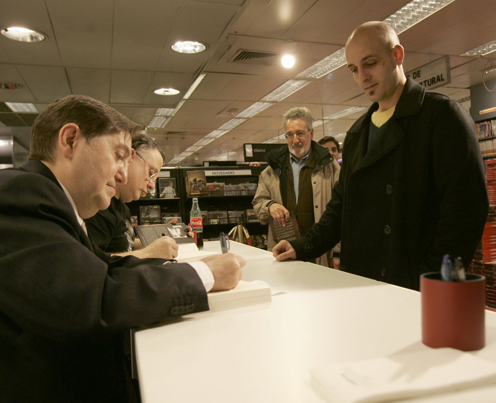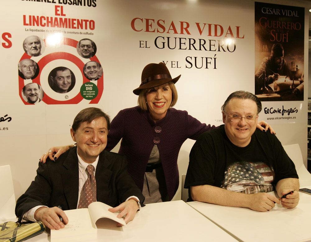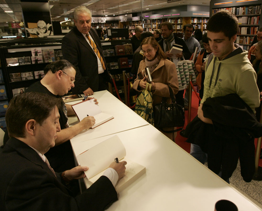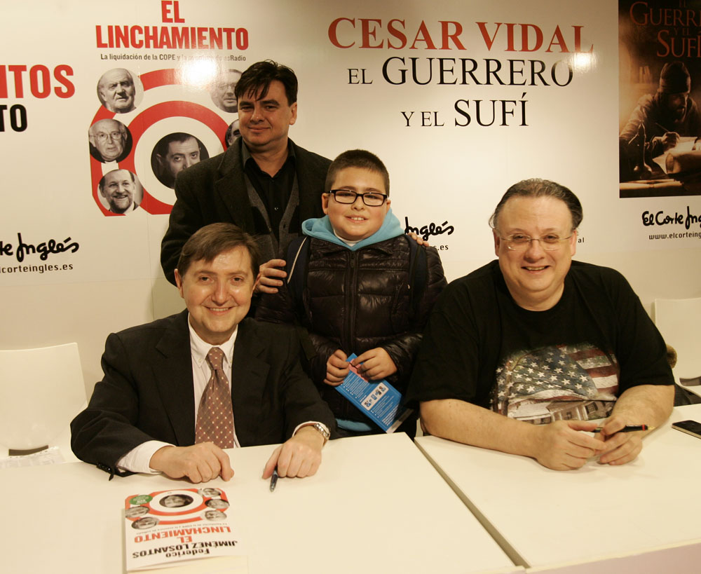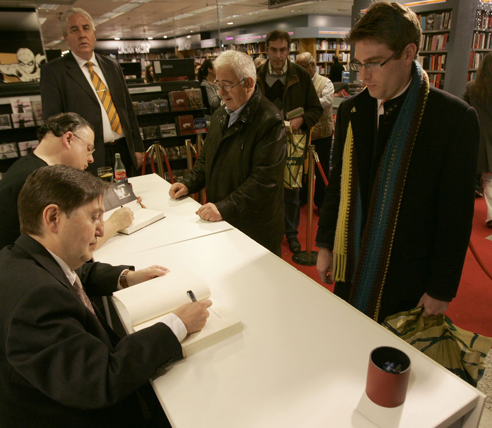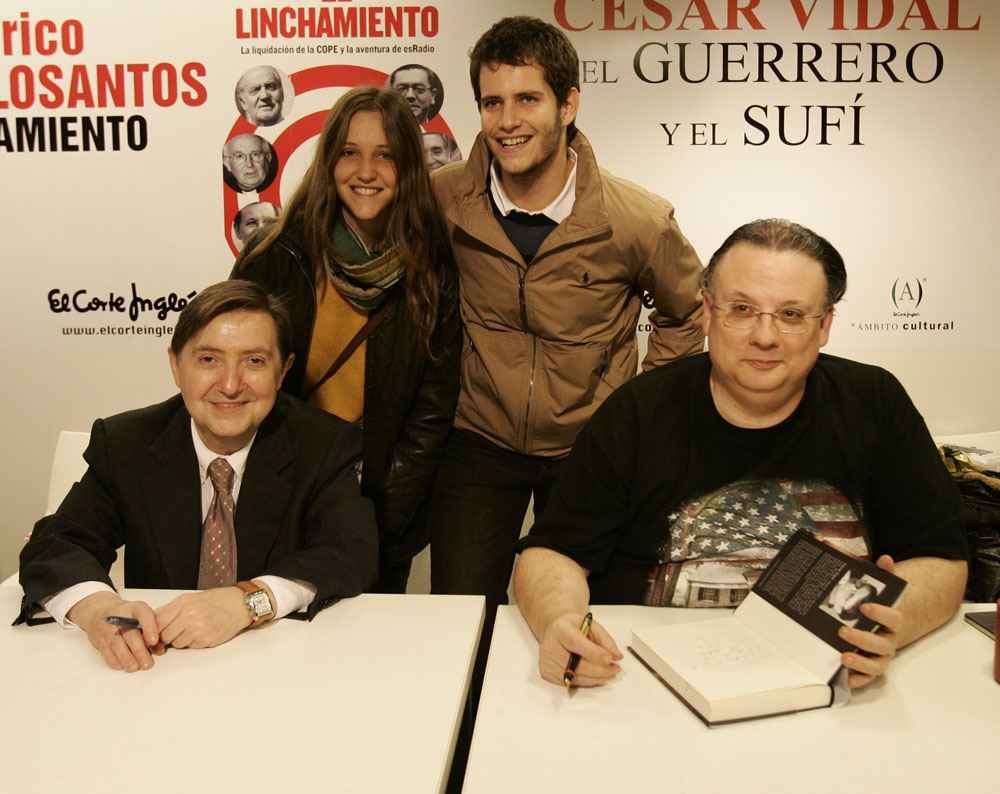 Federico Jiménez Losantos y Cesar Vidal firmaron sus libros en el Corte Inglés de Castellana. Como en sus últimas salidas, decenas de personas hicieron cola para llevarse un libro firmado. | J. Baró