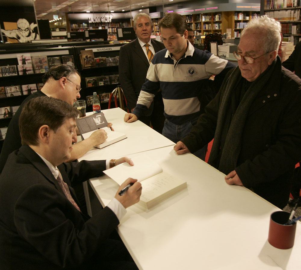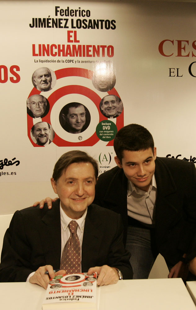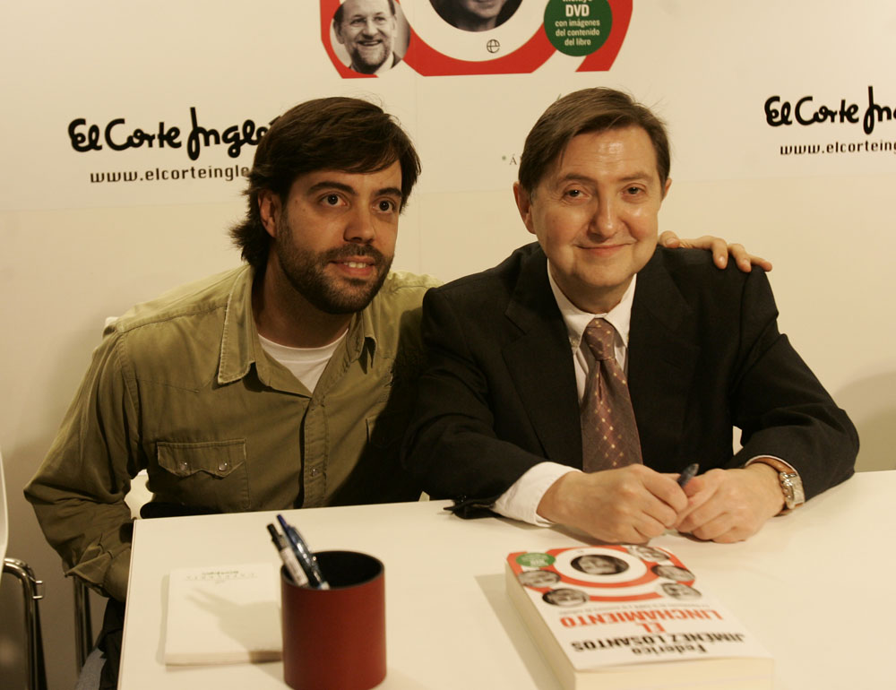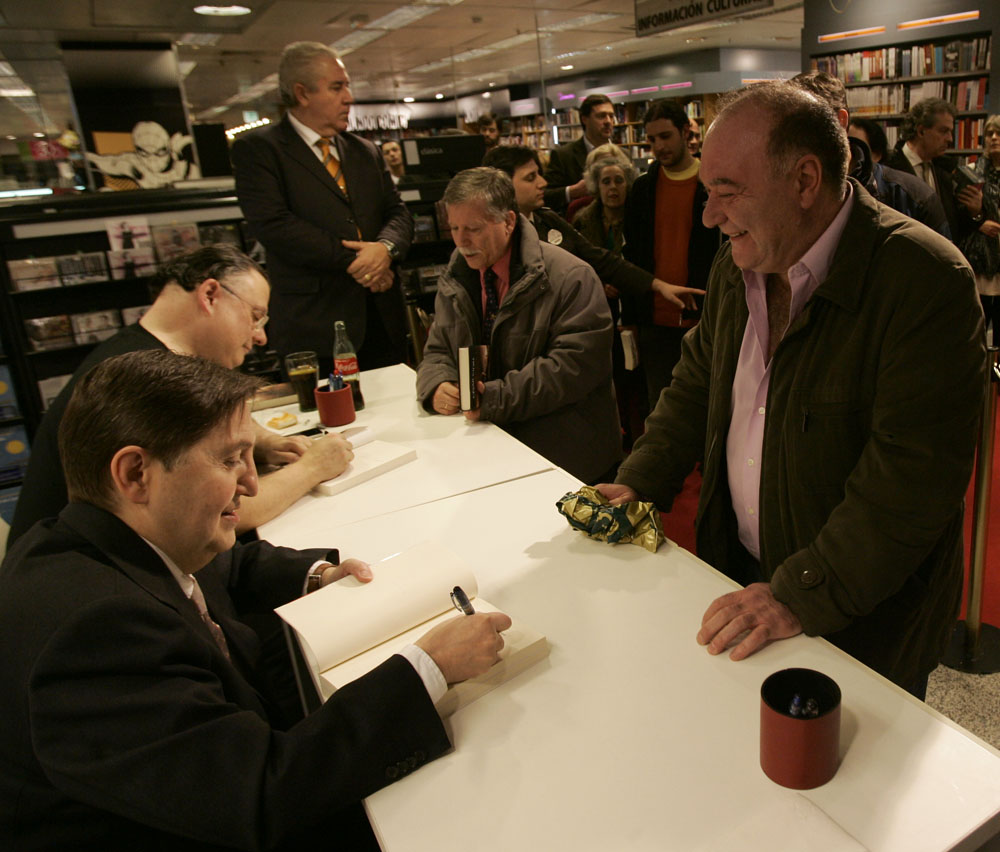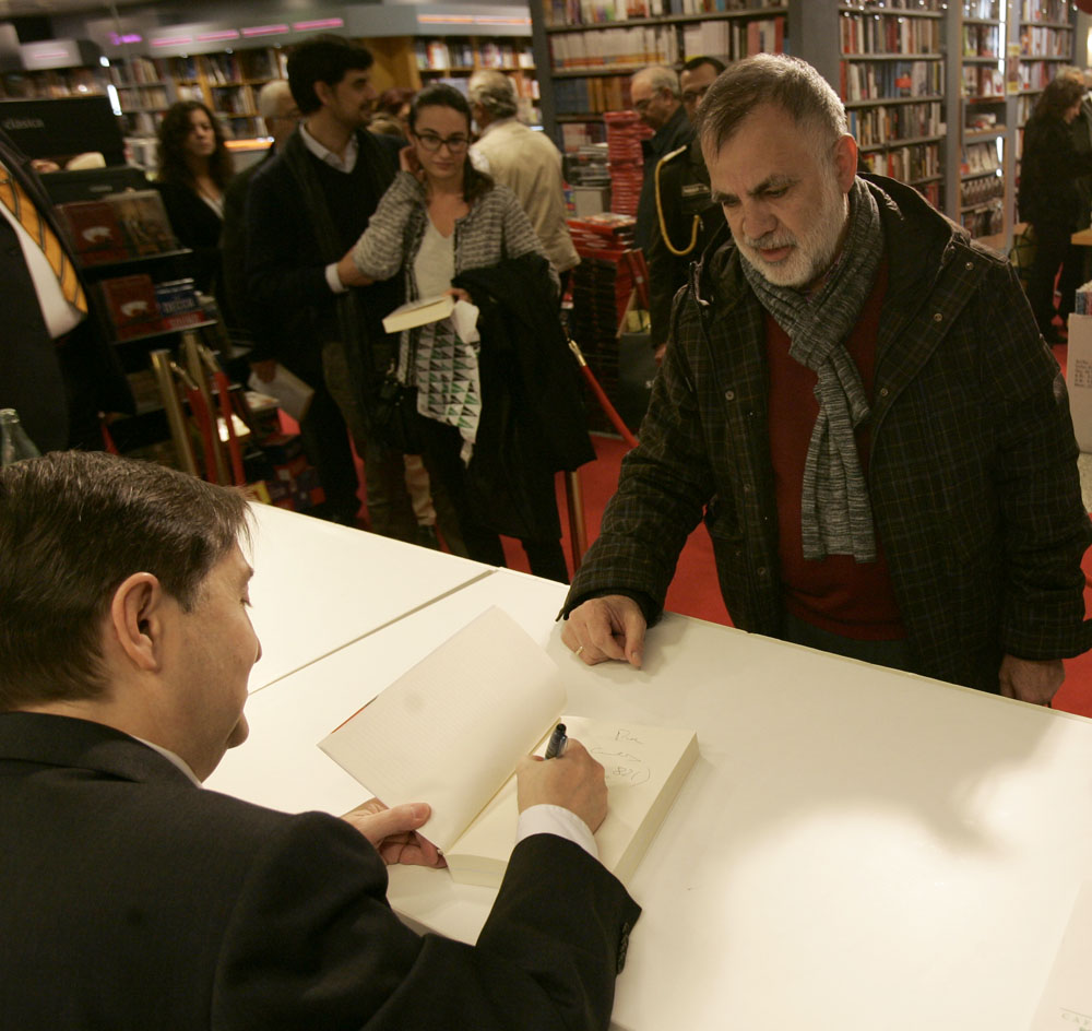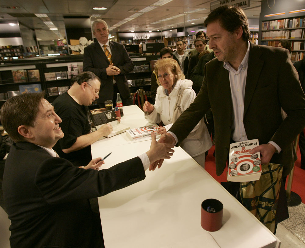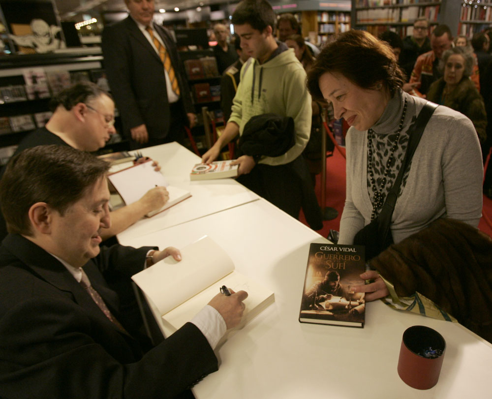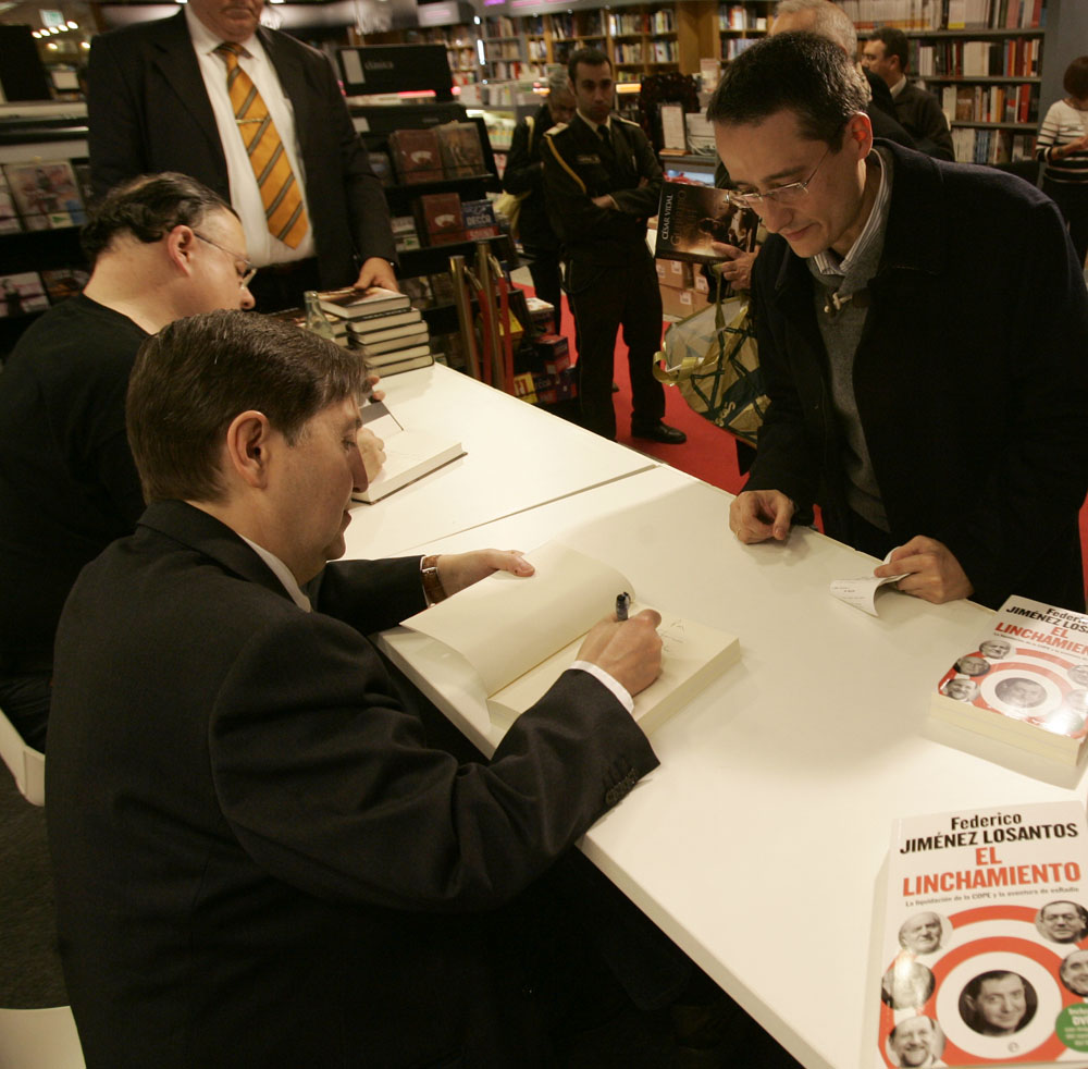 Federico Jiménez Losantos y Cesar Vidal firmaron sus libros en el Corte Inglés de Castellana. Como en sus últimas salidas, decenas de personas hicieron cola para llevarse un libro firmado. | J. Baró
