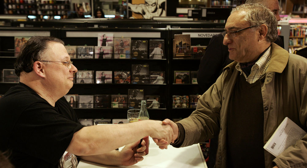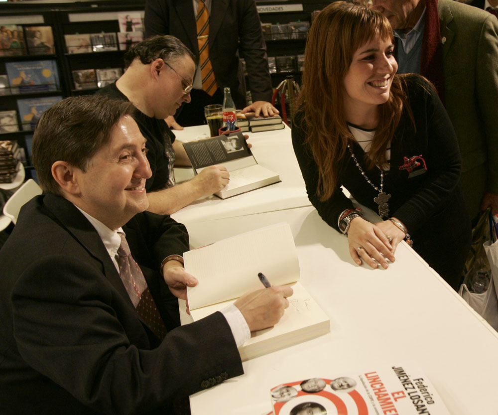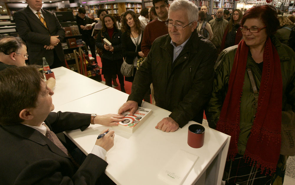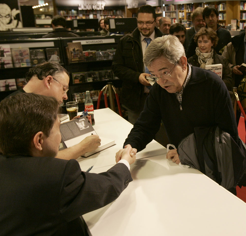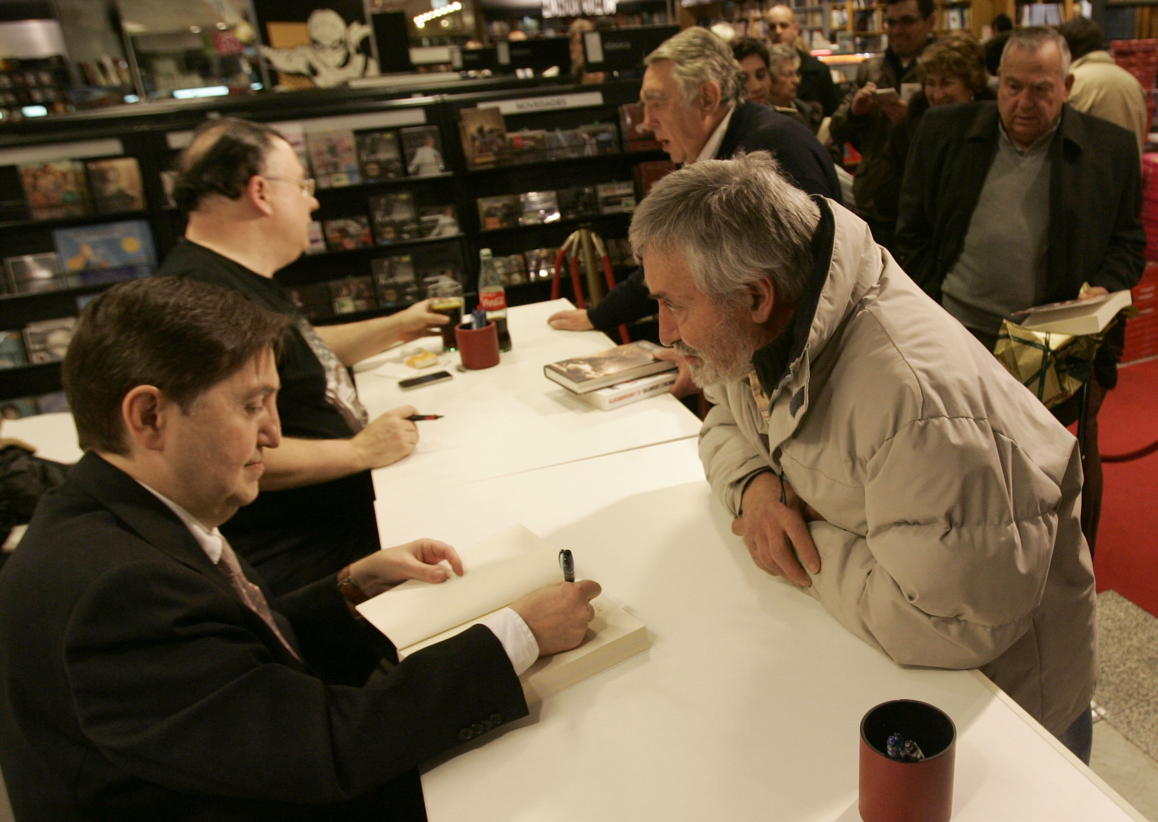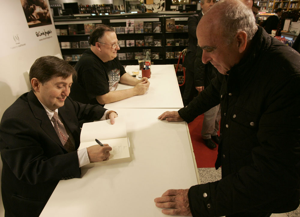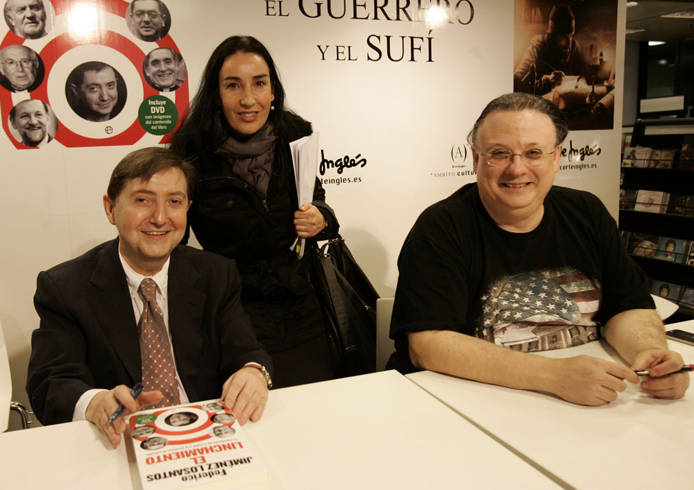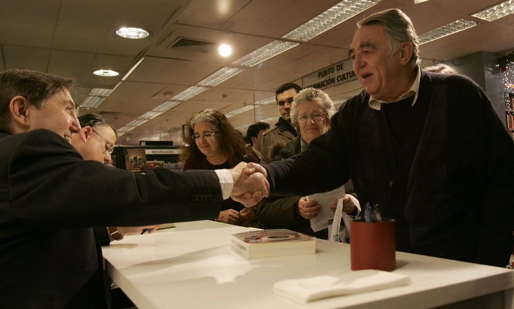 Federico Jiménez Losantos y Cesar Vidal firmaron sus libros en el Corte Inglés de Castellana. Como en sus últimas salidas, decenas de personas hicieron cola para llevarse un libro firmado. | J. Baró