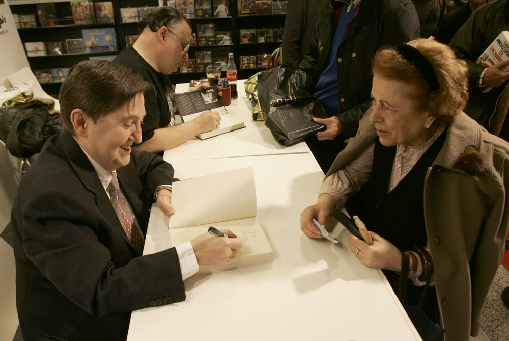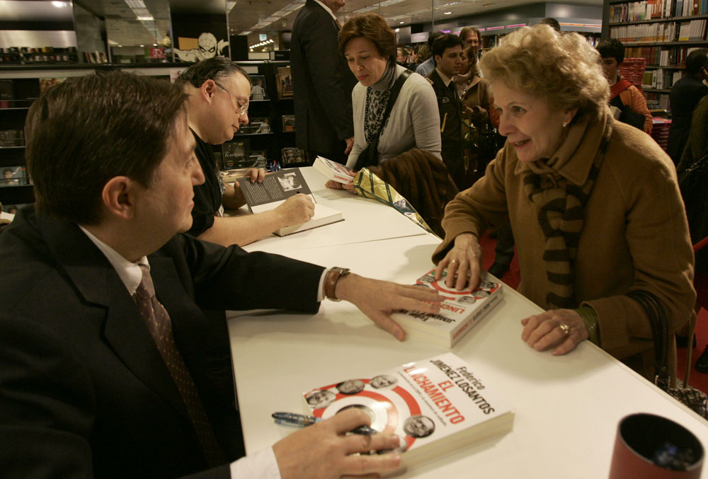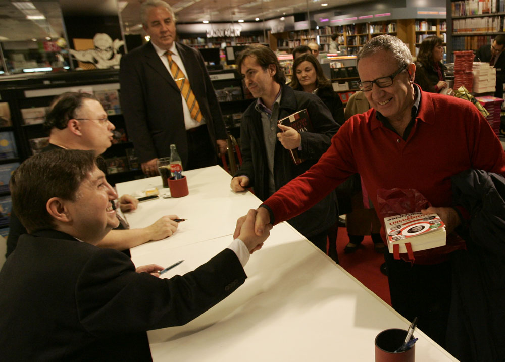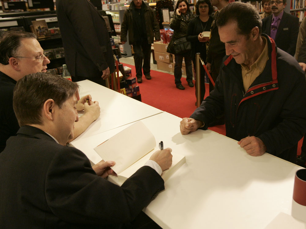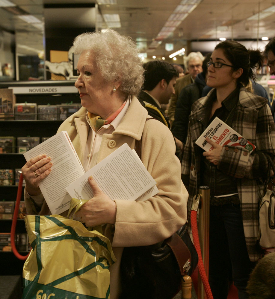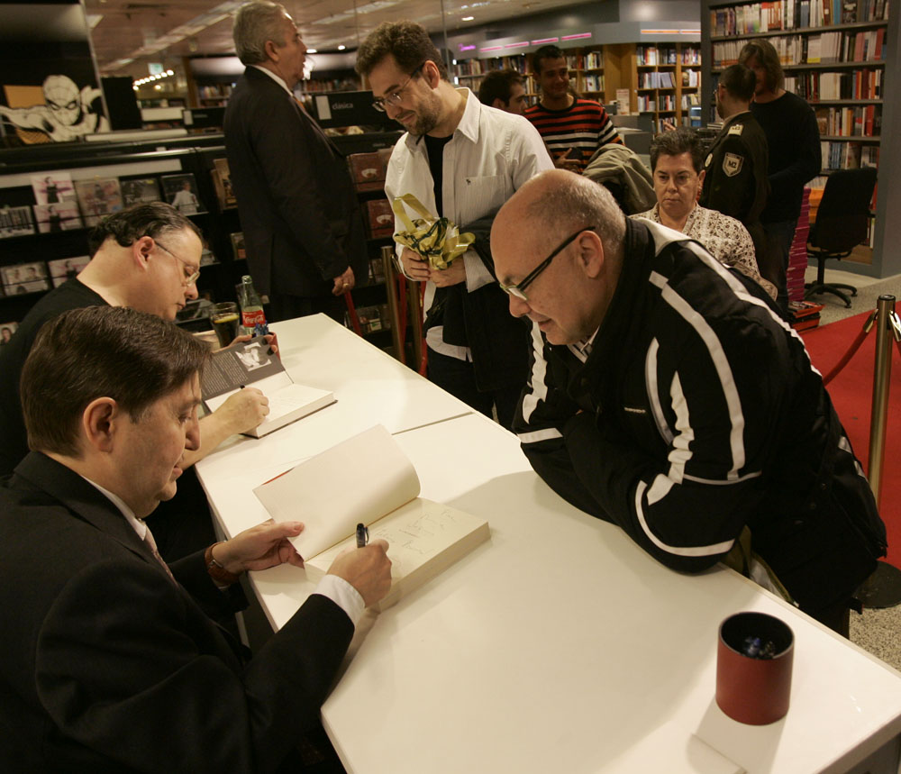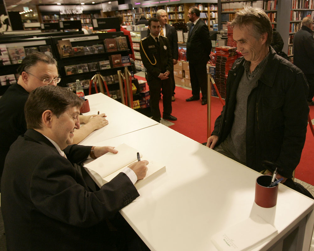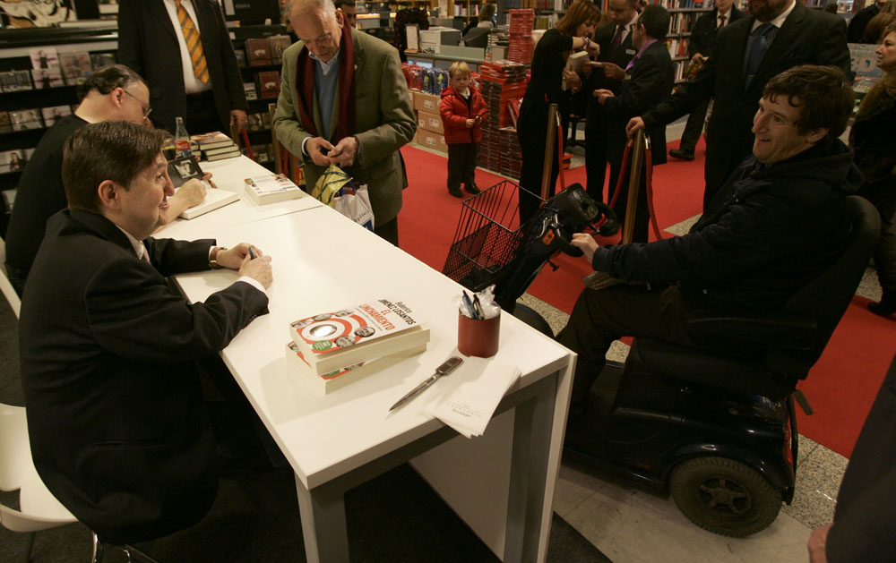 Federico Jiménez Losantos y Cesar Vidal firmaron sus libros en el Corte Inglés de Castellana. Como en sus últimas salidas, decenas de personas hicieron cola para llevarse un libro firmado. | J. Baró