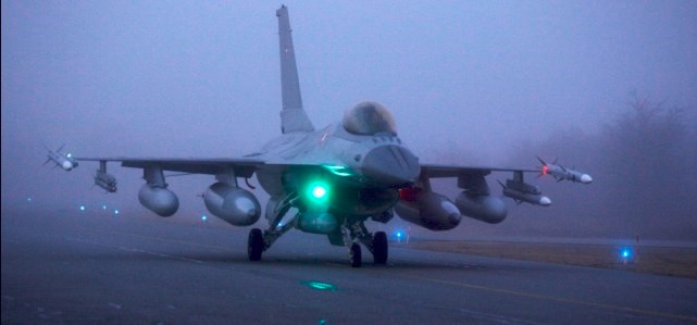 Un caza de Dinamarca llega a Sicilia preparado para atacar