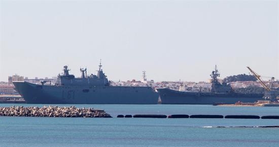 El portaaeronaves Príncipe de Asturias, que iría acompañado de su escolta, podría aportar sus Harrier y sus helicóptero para ataques a tierra.