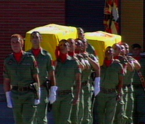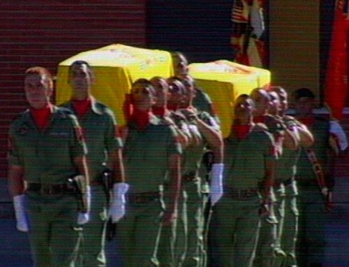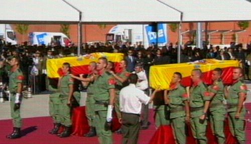 La ceremonia se celebró en la sede de la Brigada Paracaidista (BRIPAC), en Paracuellos del Jarama (Madrid), unidad a la que pertenecían los dos fallecidos, cuyos restos mortales fueron entregados a sus familias para ser enterrados en las próximas horas en Sevilla -Germán Pérez- y en Alcalá de Henares -Stanley Mera-. (Imagen TV)