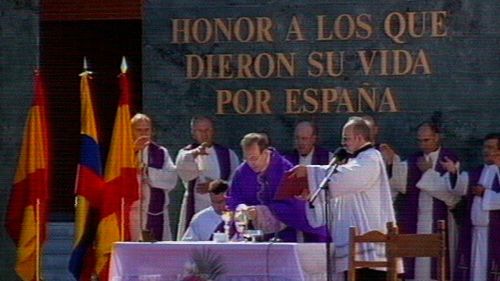 Algo más de una hora duró el funeral, oficiado por el arzobispo general castrense, Francisco Pérez González, quien afirmó que la muerte "miserable y violenta" de los dos soldados "nos deja sin palabras". (Imagen TV)