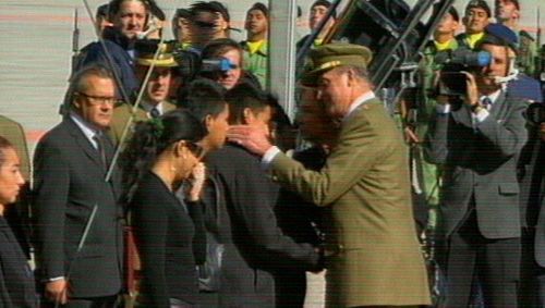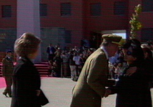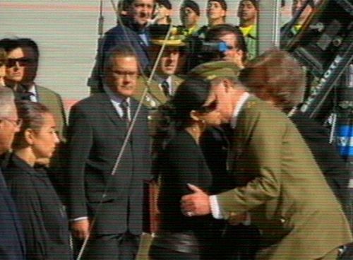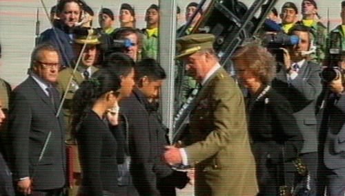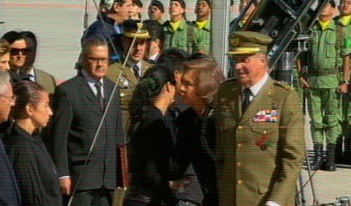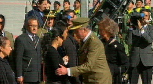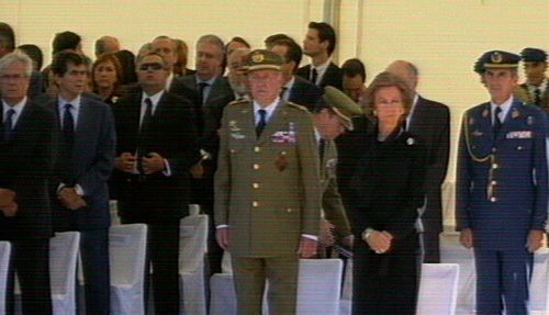 El acto comenzó con la llegada, pasadas las 11:30 horas, de don Juan Carlos y doña Sofía al acuartelamiento, momento en el que se acercaron a los familiares de los fallecidos para ofrecerles consuelo. (Imagen TV)