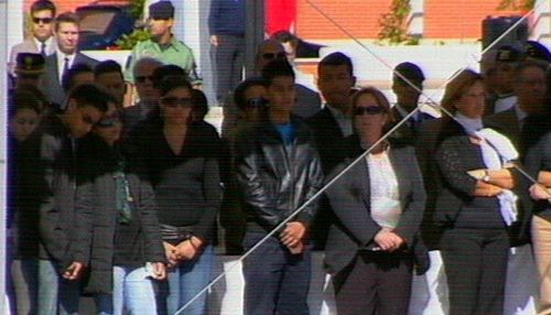 Los familiares de las víctimas siguieron el funeral con gran entereza y sólo en dos momentos concretos rompieron a llorar: en el homenaje a los caídos y al recibir la boina de paracaidista y las condecoraciones, de manos del jefe de la BRIPAC. (Imagen TV)