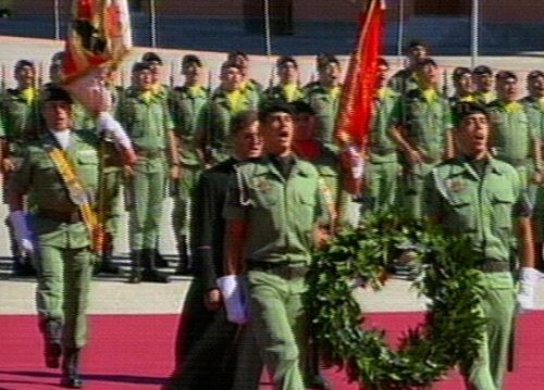 Una compañía de honores de legionarios paracaidistas con bandera, banda y música se encargó de hacer los honores durante el acto, que también contó con un homenaje a los que dieron su vida por España, que se desarrolló bajo la canción "La muerte no es el final". (Imagen TV)