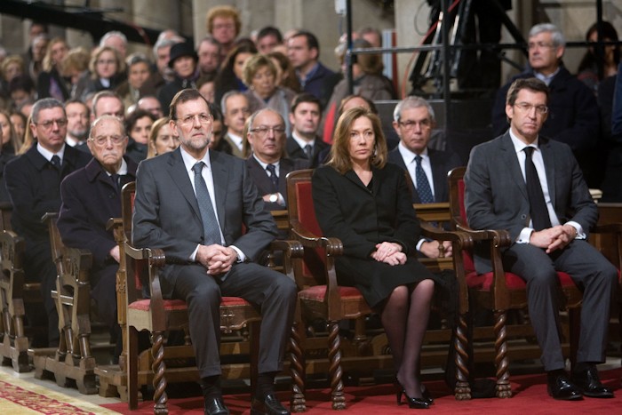 Al funeral de Fraga han asistido el presidente del Gobierno y del PP, Mariano Rajoy; el presidente de la Xunta, Alberto Núñez Feijóo; varios ministros del Gobierno, Ana Pastor, Ana Mato y Alberto Ruiz-Gallardón; y los vicesecretarios del PP, Javier Arenas y Esteban González Pons.Fotos Xoán Crespo/Ana Varela