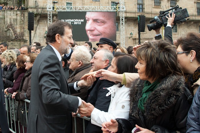 Rajoy saludó a algunos de los miles de personas que asistieron al funeral de Manuel Fraga en la plaza del Obradoiro.