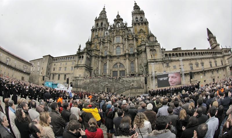 Vista del exterior de la catedral desde la plaza del Obradoiro, donde tuvo lugar un homenaje al término de la ceremonia.