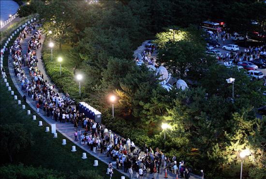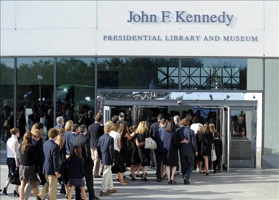 Asistentes esperan antes de ingresar a la Biblioteca John F. Kennedy, en Boston, Massachusets (EE.UU.) donde permanece el féretro con los restos del senador Edward Kennedy. EFE