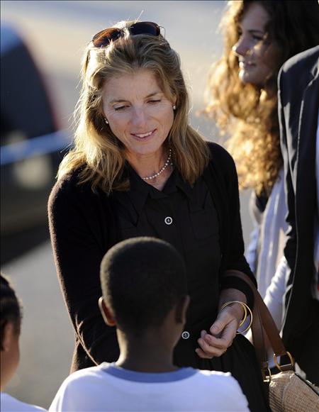Caroline Kennedy, sobrina del senador Edward Kennedy, saluda a las personas que esperaban para ingresar a la Biblioteca John F. Kennedy, en Boston, Massachusets (EEUU). EFE