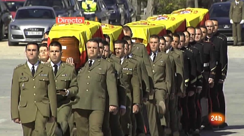 El príncipe Felipe presidió los funerales en El Goloso por el alma de los cinco militares fallecidos el pasado jueves durante unas maniobras de desactivación de explosivos.