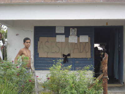 Carteles improvisados con cartones y fotografías de Orlando recuerdan en Banes que a Zapata Tamayo no se le dejó morir, como dicen algunos, sino que fue asesinado. (Imagen cedida por el Directorio Democrático Cubano)