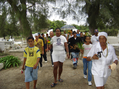 Reina Tamayo, junto a familiares y amigos en el cementerio de Banes, donde dieron sepultura a Orlando Zapata Tamayo. (Imagen cedida por el Directorio Democrático Cubano)