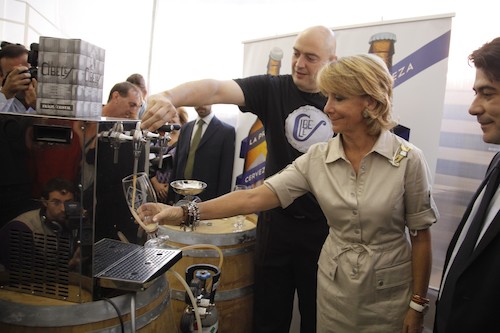 La presidenta de la Comunidad de Madrid puso luz en las aspiraciones del alcalde: "Quiere ser ministra". Esperanza Aguirre no abandonó sus responsabilidades y visitó la cervecera La Cibeles y el obrador de Viena Capellanes en Alcorcón.