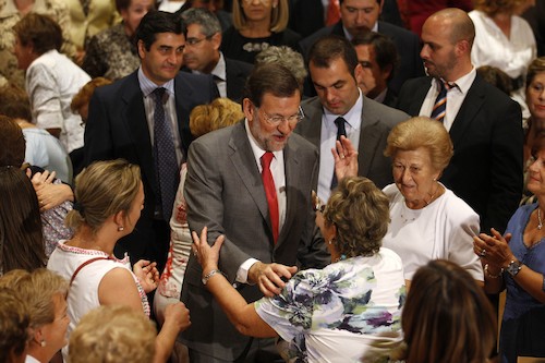 Mariano Rajoy buscó refugio al lado de María Dolores de Cospedal. El día que los medios de comunicación le reclamaban una declaración sobre Gallardón él fue fiel a su estilo y siguió a lo suyo.