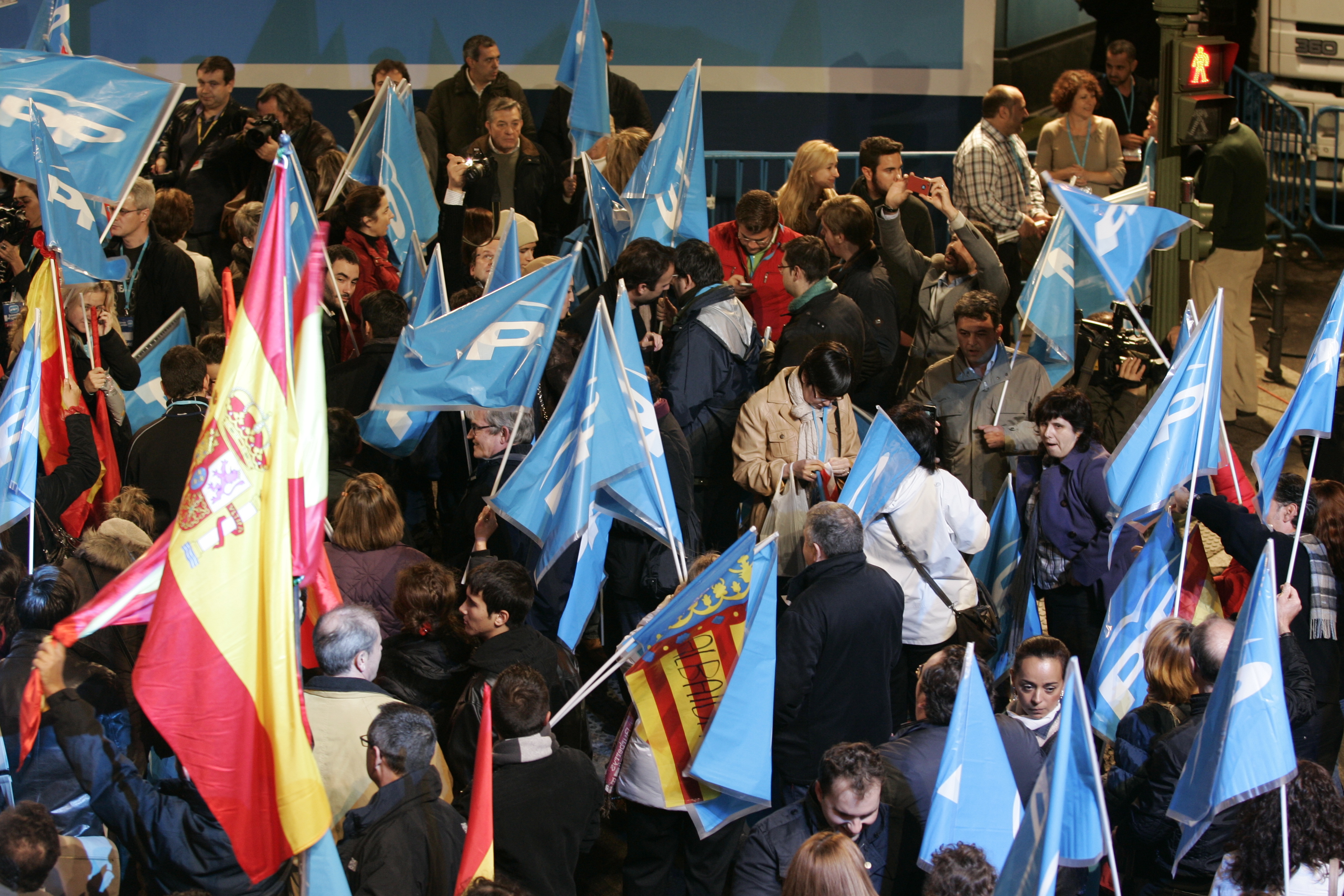 Desde la media tarde, decenas de simopatizantes del PP comenzaron a llenar la madrileña calle Génova frente a la sede del partido. Pronto llegó la euroforia y, al cierre de los colegios electorales, podía verse un mar de banderas de España y del PP festejando, seguros de la victoria
