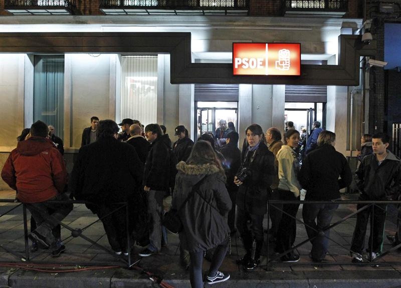 Mientras en Génova los simpatizantes del PP daban rienda suelta a la euforia, en la sede del PSOE podían verse más periodistas y policías que simpatizantes socialistas