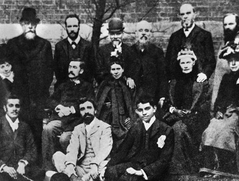 Gandhi (abajo) con los miembros de la Vegetarian Society en la isla de Wight en 1890.