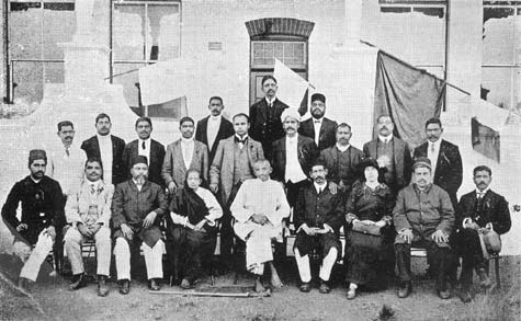 El Congreso Indio de Natal en 1895. Gandhi, uno de sus miembros, se encuentra en el centro de la segunda fila.