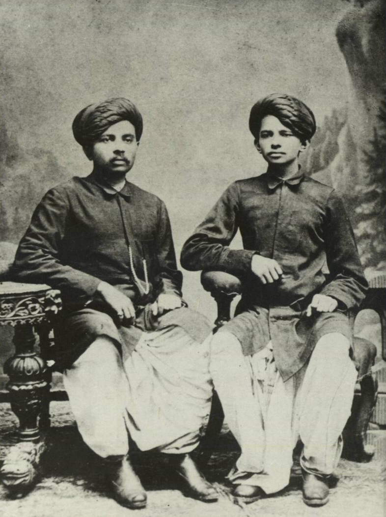Mohandas Gandhi (derecha) en 1886 junto a su hermano Laxmidas.