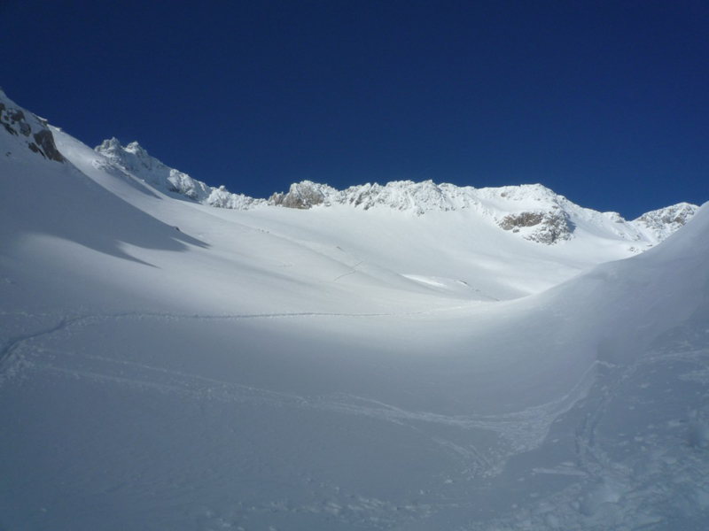 El glaciar de Maladeta cubierto completamente por la nieve durante el invierno de 2009.