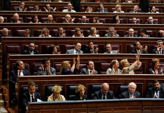Sólo los diputados socialistas más entusiastas o sectarios aplauden efusivamente. Los miembros del Gobierno miran hacia abajo.