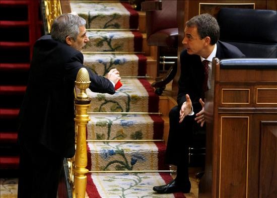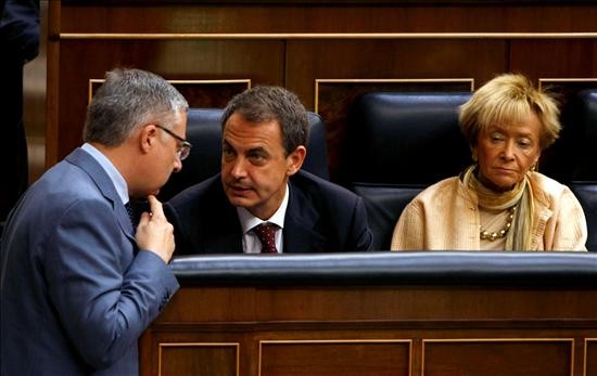 José Blanco charla con Zapatero ante una De la Vega con la mirada ausente.