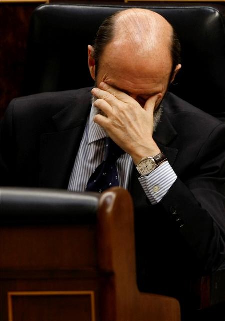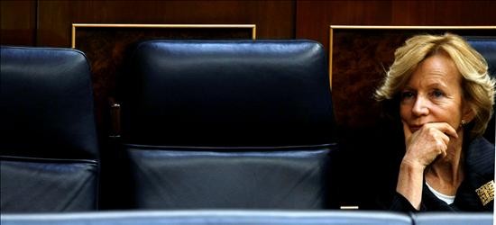 Salgado aguanta el chaparrón en su escaño. Desautorizada constantemente por Zapatero, hoy ha tenido que dar la cara por el presidente.