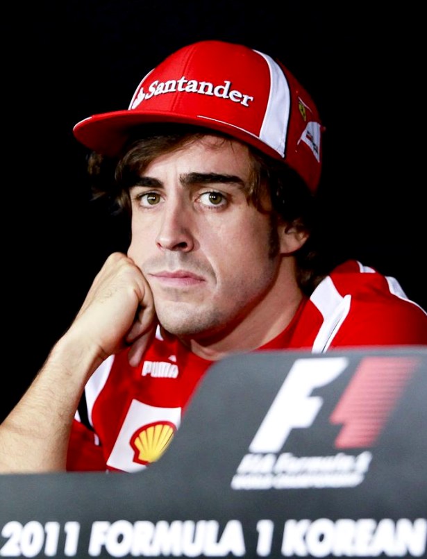 Un cariacontecido Fernando Alonso comparece en rueda de prensa en el Circuito Internacional de Yeongam.